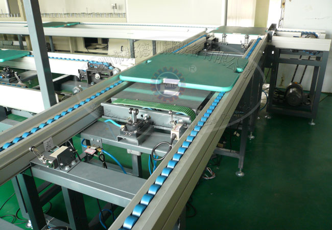 工装板平面循环组装线技术优势:输送线链条采用三倍速链条,链条滚轮采用工程塑胶,具有耐磨、噪音低等特点,输送工装板时顺畅圆滑,运转时安静无声,平稳传动。依照客户生产制程及厂房空间条件,可为客户度身设计规划,务求合理的设计可为客户节省空间的同时达到最佳的生产流程。