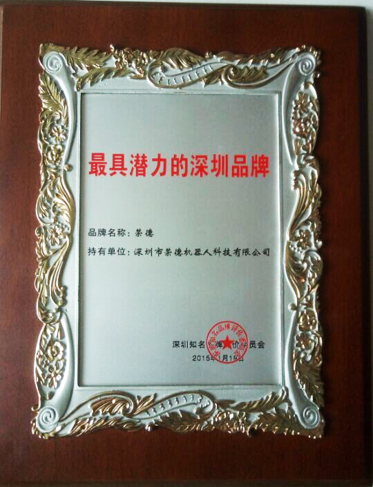 作为行业内唯一获得深圳知名品牌的深圳本土民族品牌,深圳市荣德机器人科技有限公司自创立以来,一直非常注重品牌建设工作,并成功导入卓越绩效管理模式,并于2013年获得了“广东省名牌产品”的荣誉称号,成为行业内第一家获此殊荣的领军企业。借此获得深圳知名品牌之际,荣德机器人将狠抓产品质量,为响应习总书记三个转变的重要思想将中国机器人民族品牌做大做强,为振兴民族工业、提升民族品牌、替代进口品牌作出企业应尽的努力。