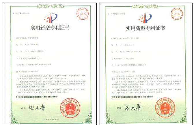 荣德机器人一直致力于自动喷涂行业的发展,20年来专注于自动喷涂设备的研发和生产,在行业内独树一帜,不断开发新的产品,引领喷涂行业自动化升级。荣德每年投入销售额的6%以上作为研发费用,目前为止,获得20多项国家专利,以及各类奖项。下面为荣德相关专利的简单介绍。