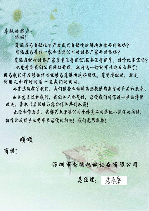 无论合作与否,我都代表荣德公司全体员工向您致以深深的问候,相信此次握手必将带来后续的拥抱!我们无限期待!