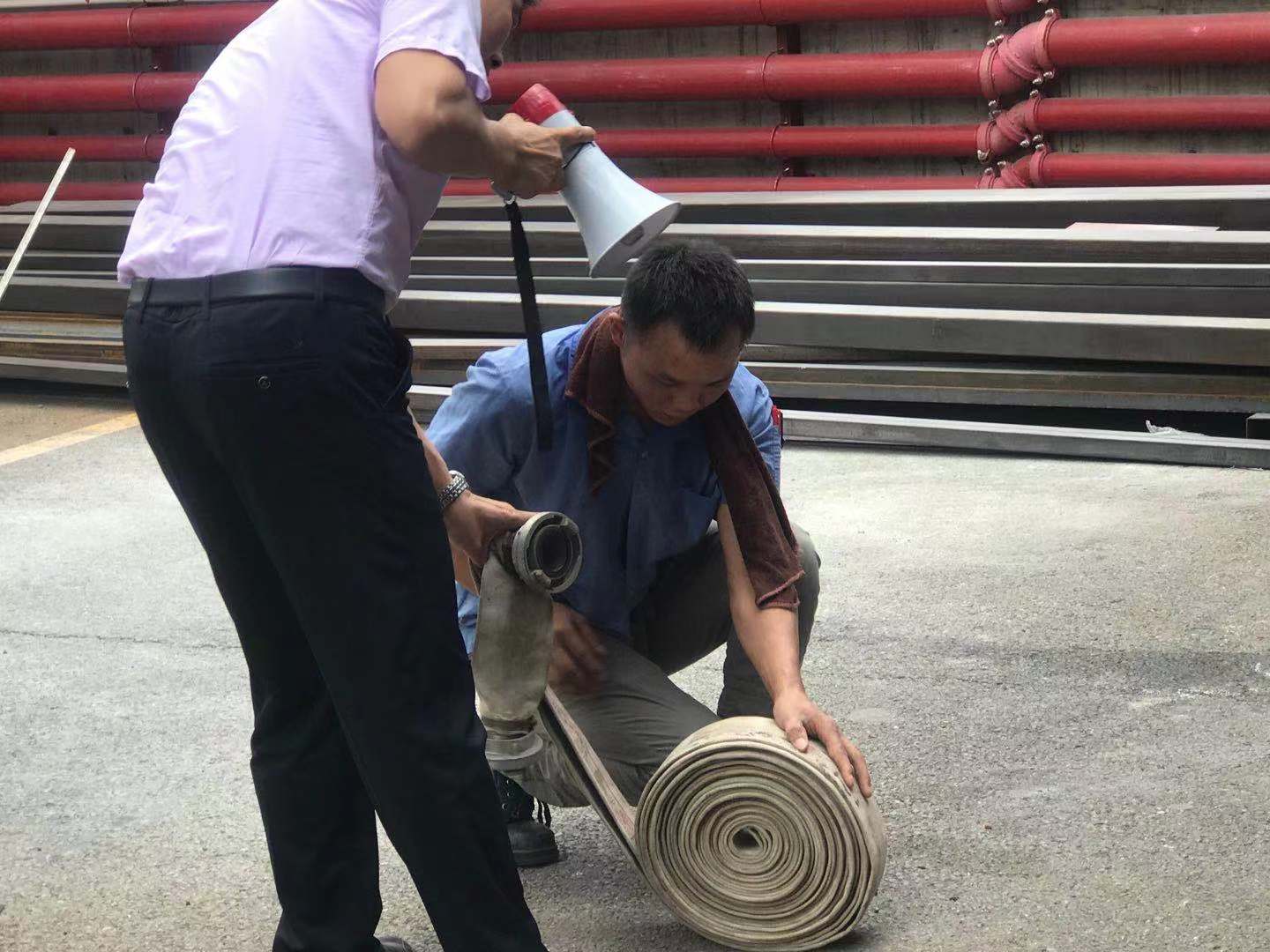 8月31日下午三点, 随着一股浓烟飘进办公楼内,急促刺耳的警报声响起,消防应急疏演练正式开始。有同事在楼道旁引导员工快速疏散,每个人各捂住口鼻,低头有序沿着安全通道,撤离到露天地带。集合完毕后,各部门清点人数,并上报。整个演练过程安全、快速,仅用时3分钟。