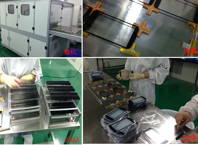 为保证防指纹膜层均匀性及在玻璃的附着性,荣德研发的AF防指纹药液自动喷涂设备是第一段配有等离子处理,第二段是采用往复式喷涂方式,第三段配有无尘表干隧道炉,自动表干,防止后续落尘,结合药液的物理特性,配合精确的压力及喷幅。使得各点膜层的密度误差在3%以下。这种工艺可以大大提高膜层与玻璃的附着力。