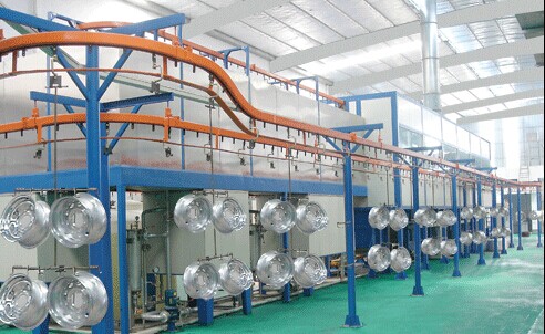 1)采用线外布置,设备采用了全封闭的结构形式,可对喷漆完成的轮盘进行烘干,采用自动漆雾处理。