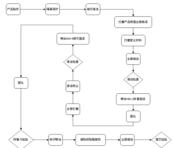 以H06-2锌黄底漆、B04-9银灰面漆为例,具体的喷漆过程流程图如图1所示。