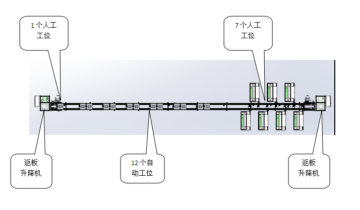 4、整体装配线主要由三倍速装配线体、返板线体、返板提升机、工装板、电器控制(电器控制由客户提供)。