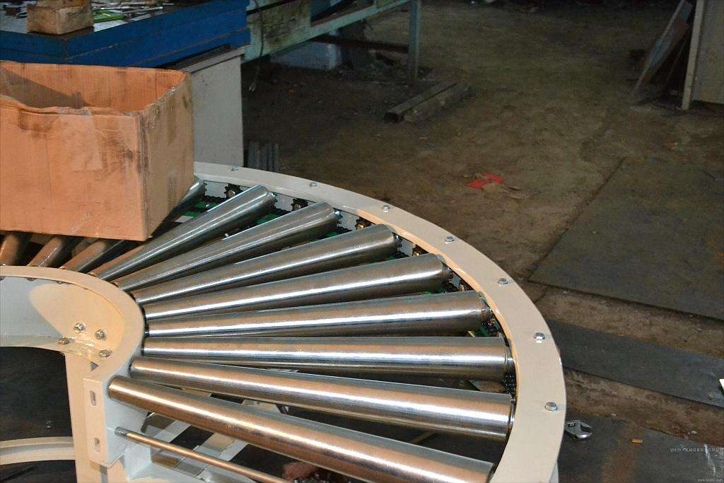 喷涂生产线单层包塑棍子积方式托盘输送线体,由两个减速电机驱动,摩擦式传动,共分5个工作区域,长约二十六米;考虑到输送品种繁多、剥漆、打磨二个工序,不同的产品工序时间变化较大,为避免工作过程中形成瓶颈工序,特在此2个工序间专设物料待放区域,以确保线体输送流畅。同时考虑到托盘对产品的兼顾,托盘采用500*1000的规格,纵向输送,便于操作。