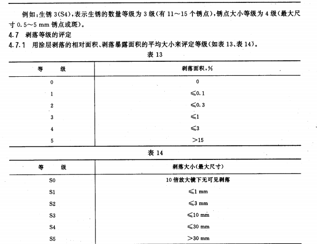 4.如漆膜有数种破坏现象,评定等级时,应按按破坏最严重的一项评定。
