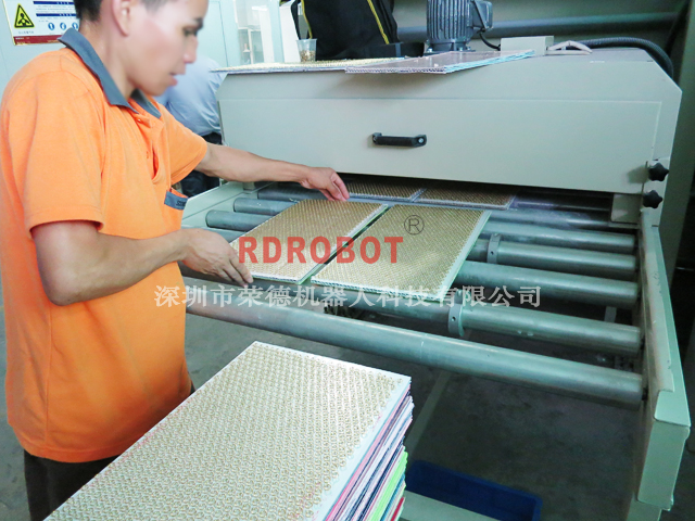 3.适合的产品是大平面的矩形产品,或者将小型的制品排成矩阵的形式放在托盘上喷涂.尤其是平面光油镜面的喷涂,是手工喷涂所不能做到的.