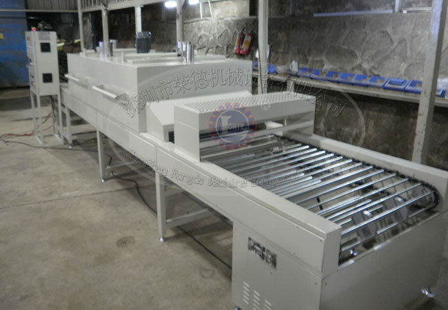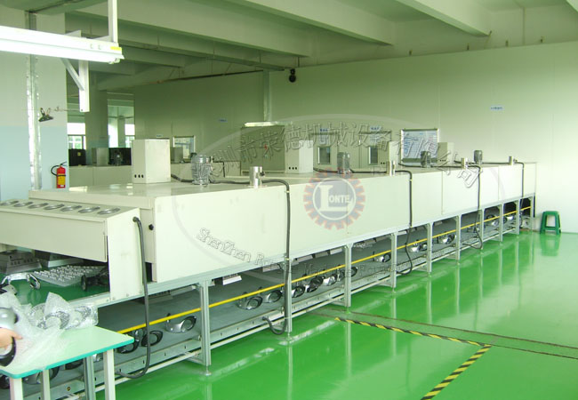 喷漆烘干流水线技术优势:该装置反射镜采用聚光型冷镜,灯下加装石英玻璃板,可有效降低被照物表面温度;变频无级调速,保证传送平稳;触摸屏微电脑自动控制,实现人机对话;每套UV系统独立控制,依生产开启灯管数量;每支灯设累计工作计时器,方便掌握灯管工作时间和老化程度;透明视窗,工作时可以观察固化灯工作情况,并设开门保护装置;灯管及灯罩可以上下调整。